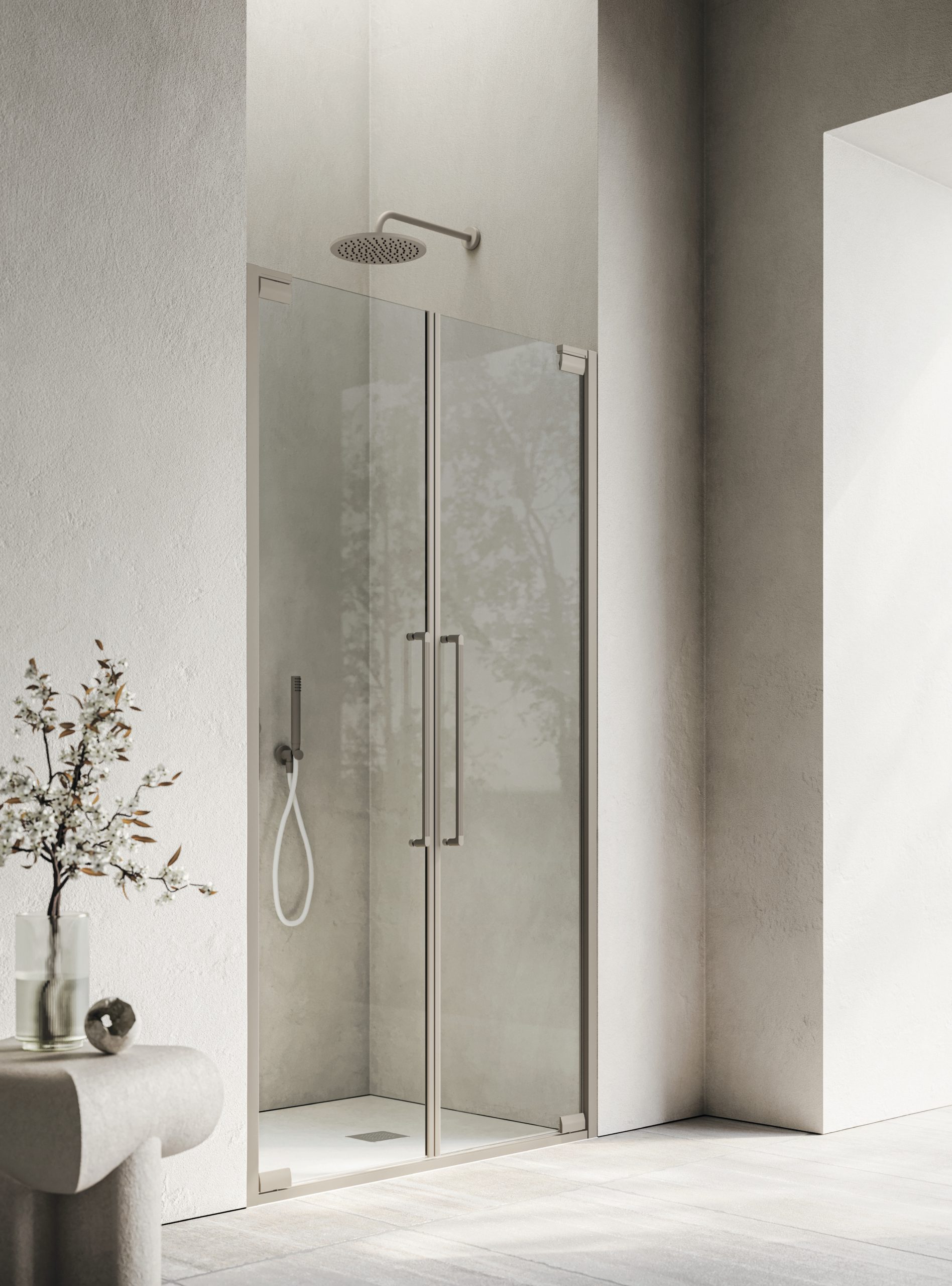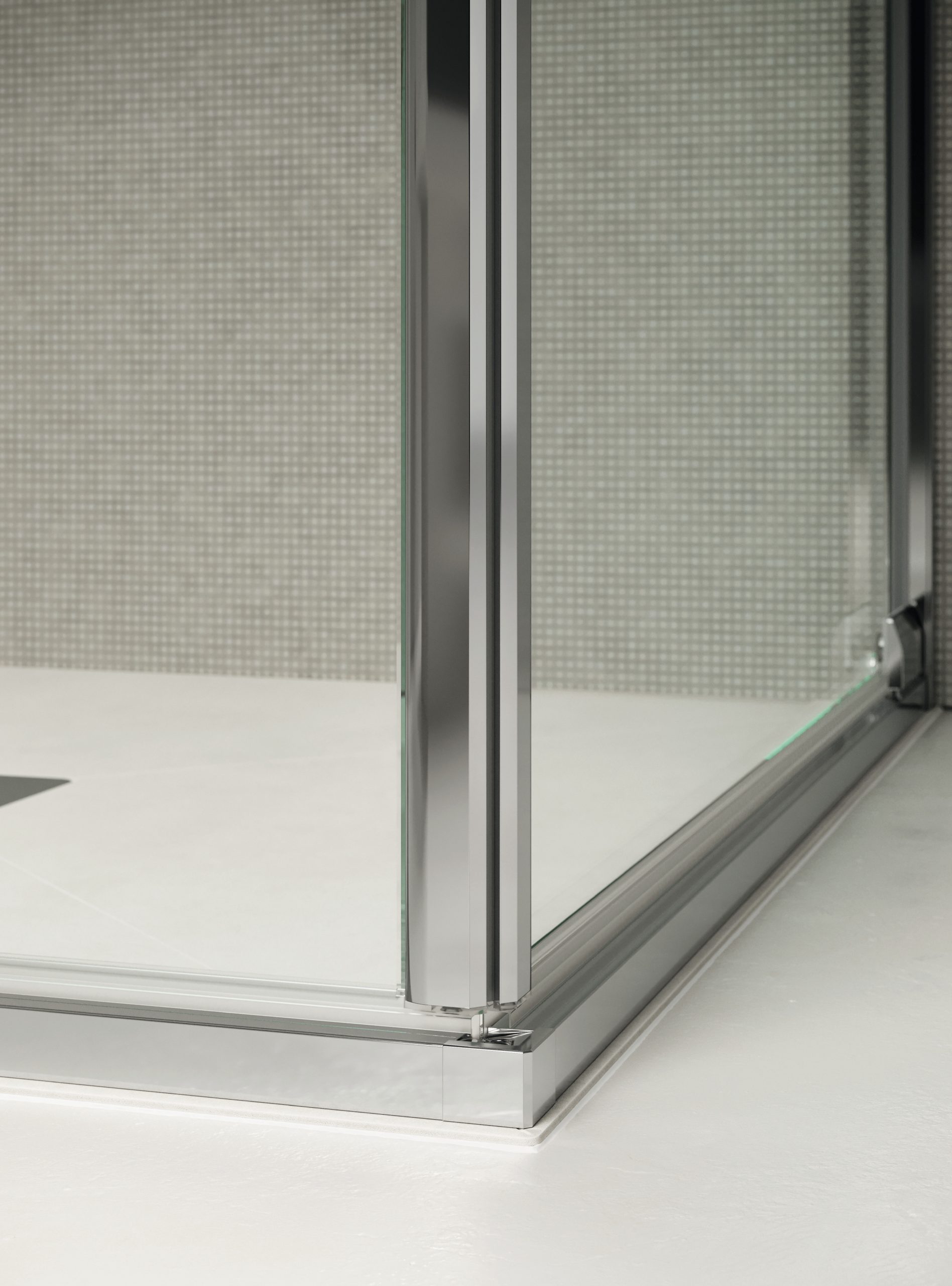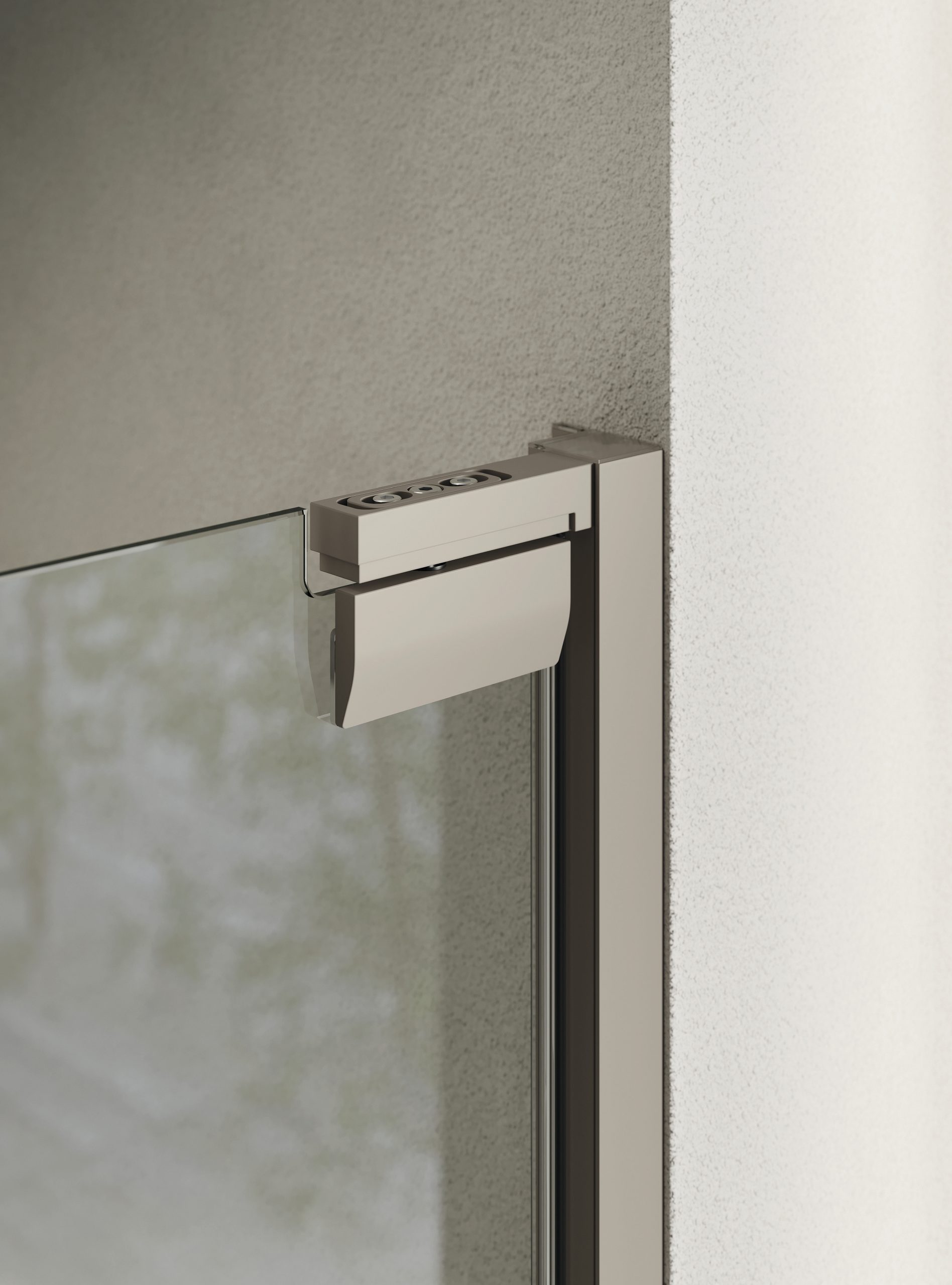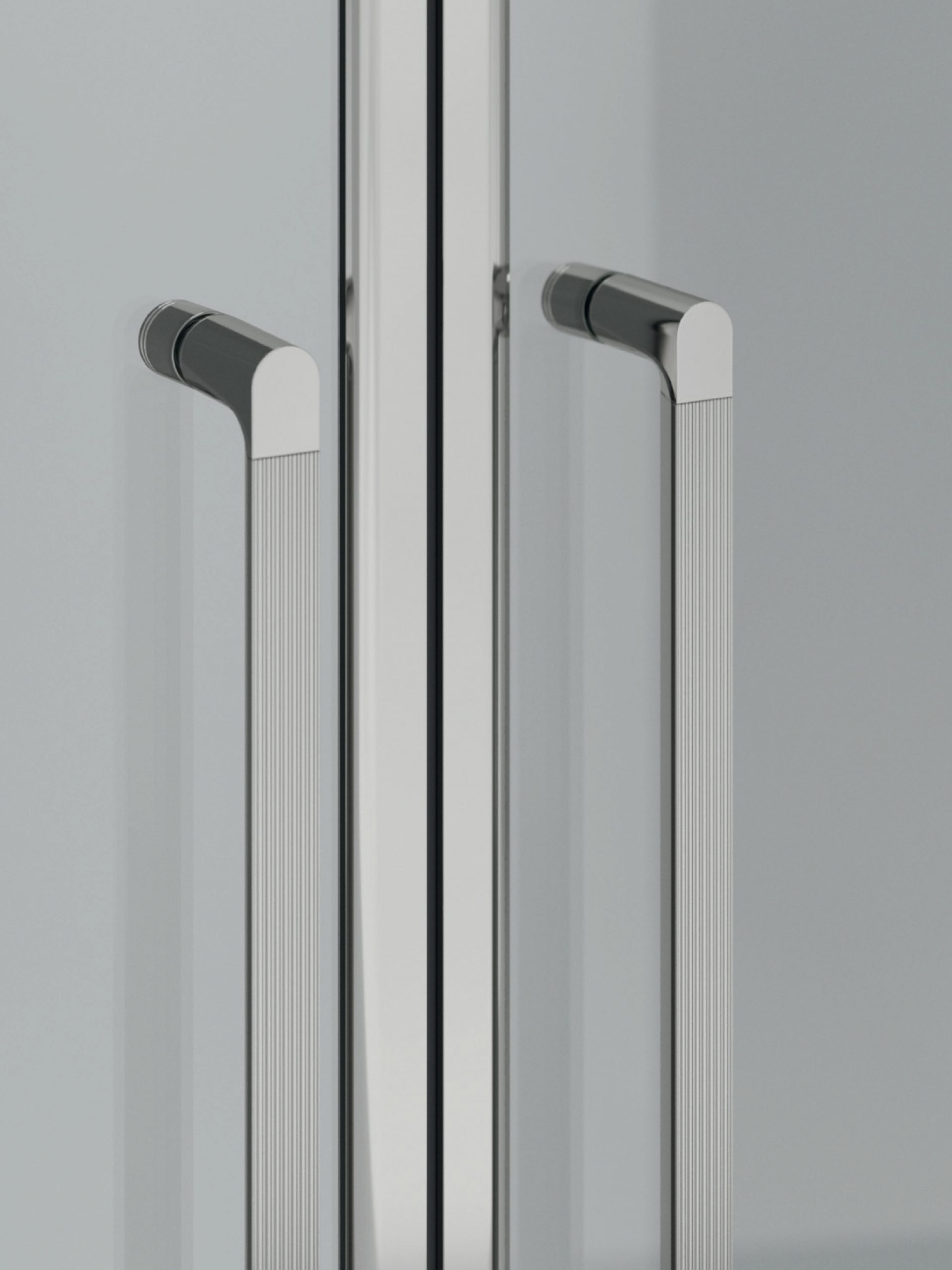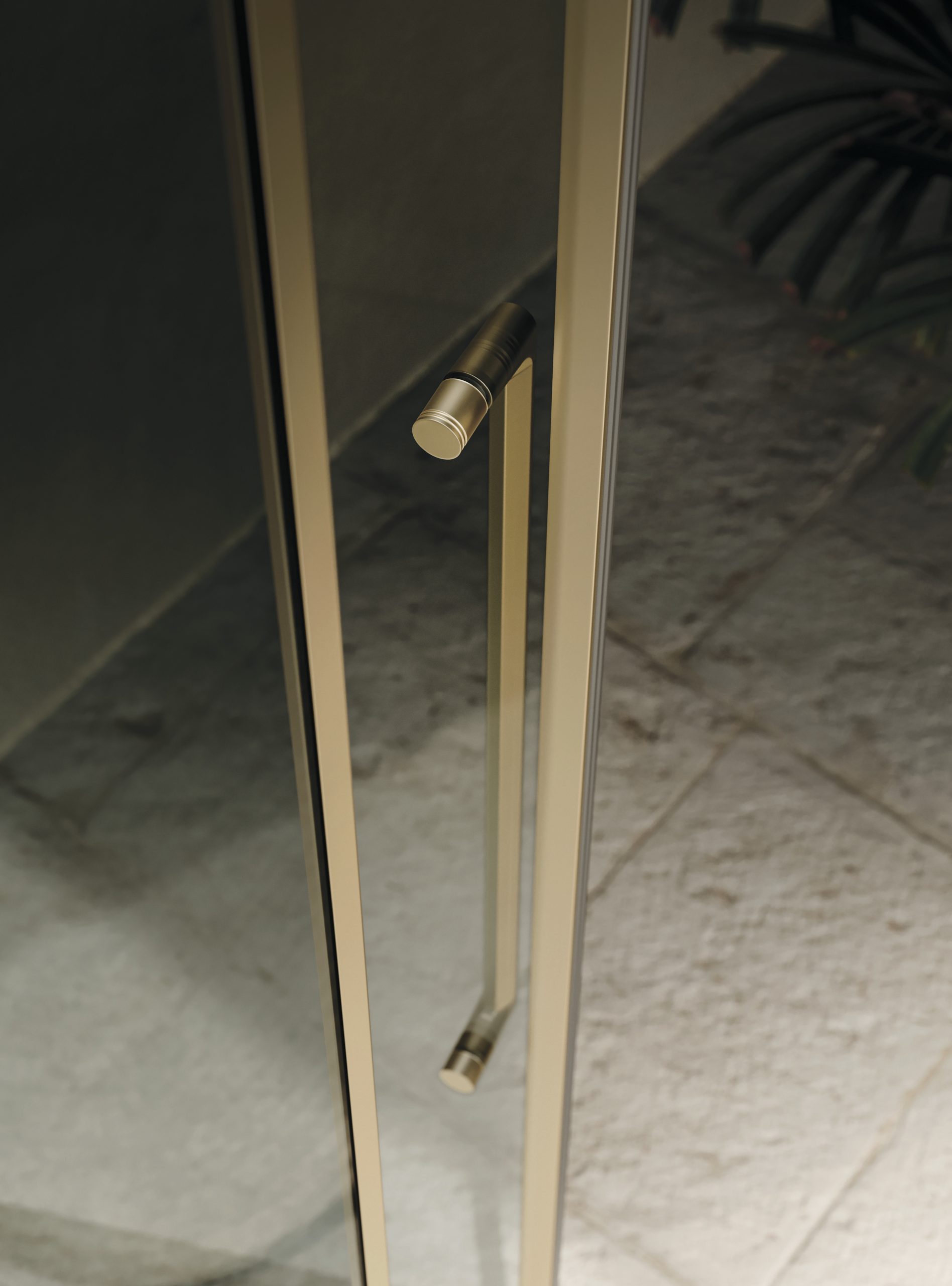 Zefiro Light est la déclinaison la plus épurée de la paroi de douche Zefiro, pensée pour ceux qui recherchent une esthétique aérienne sans renoncer à la robustesse. L’absence de barre transversale supérieure libère la transparence du verre de 6 mm, transformant la cabine de douche en un élément de décoration discret et raffiné. Le design est souligné par une élégante poignée assortie aux profilés, soignée méticuleusement même sur la face intérieure et enrichie d’un bouton ergonomique au style minimaliste.