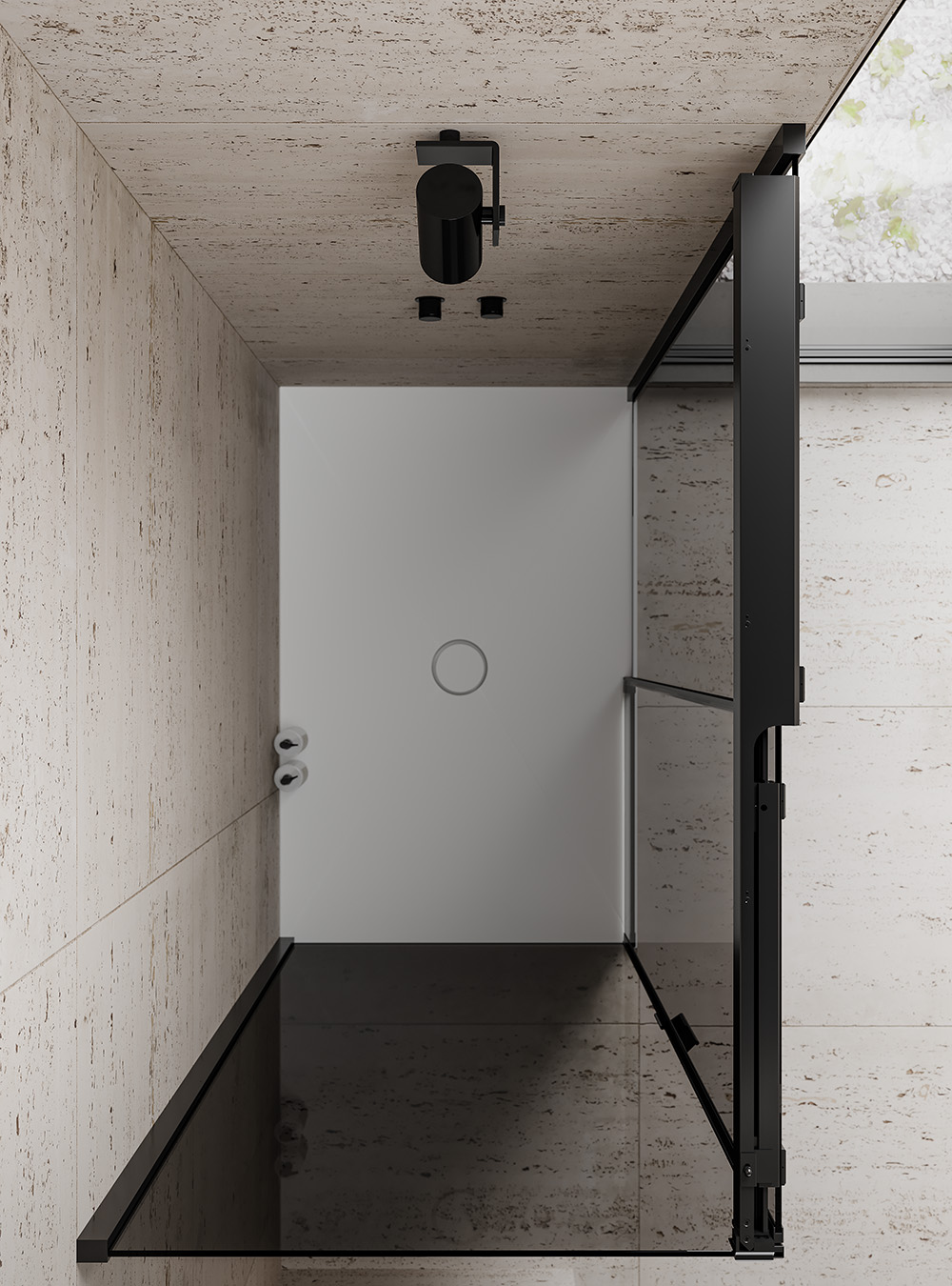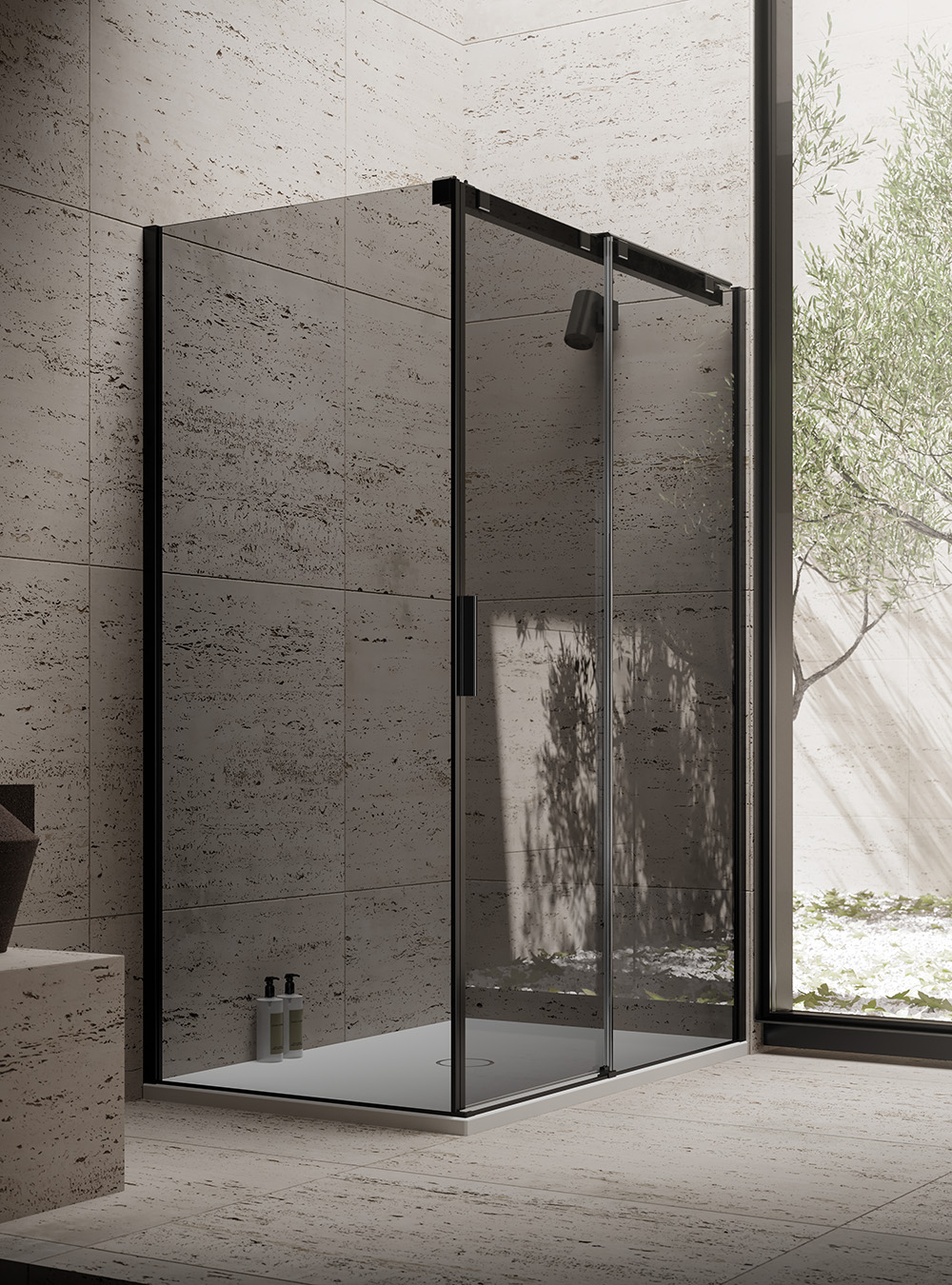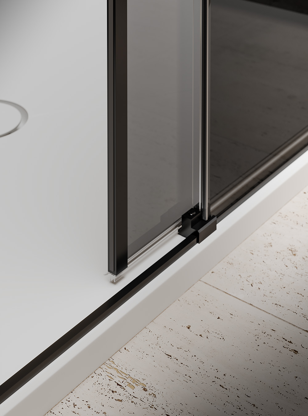 ICON porte coulissante avec paroi fixe alignée + paroi fixe latérale façonnée