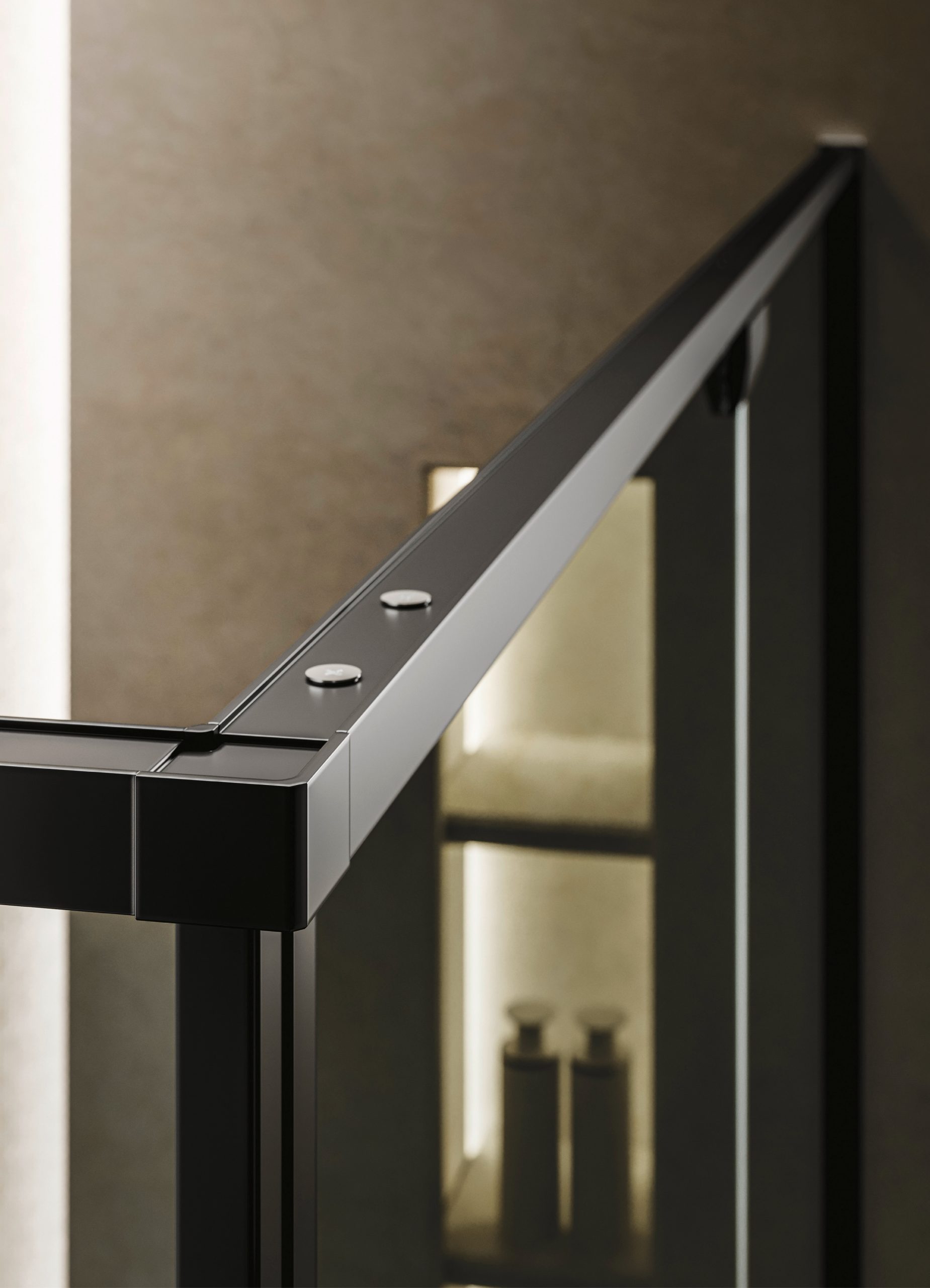 Le verre de la porte est fixé au moyen de joints excentriques qui permettent un réglage simple et complet.