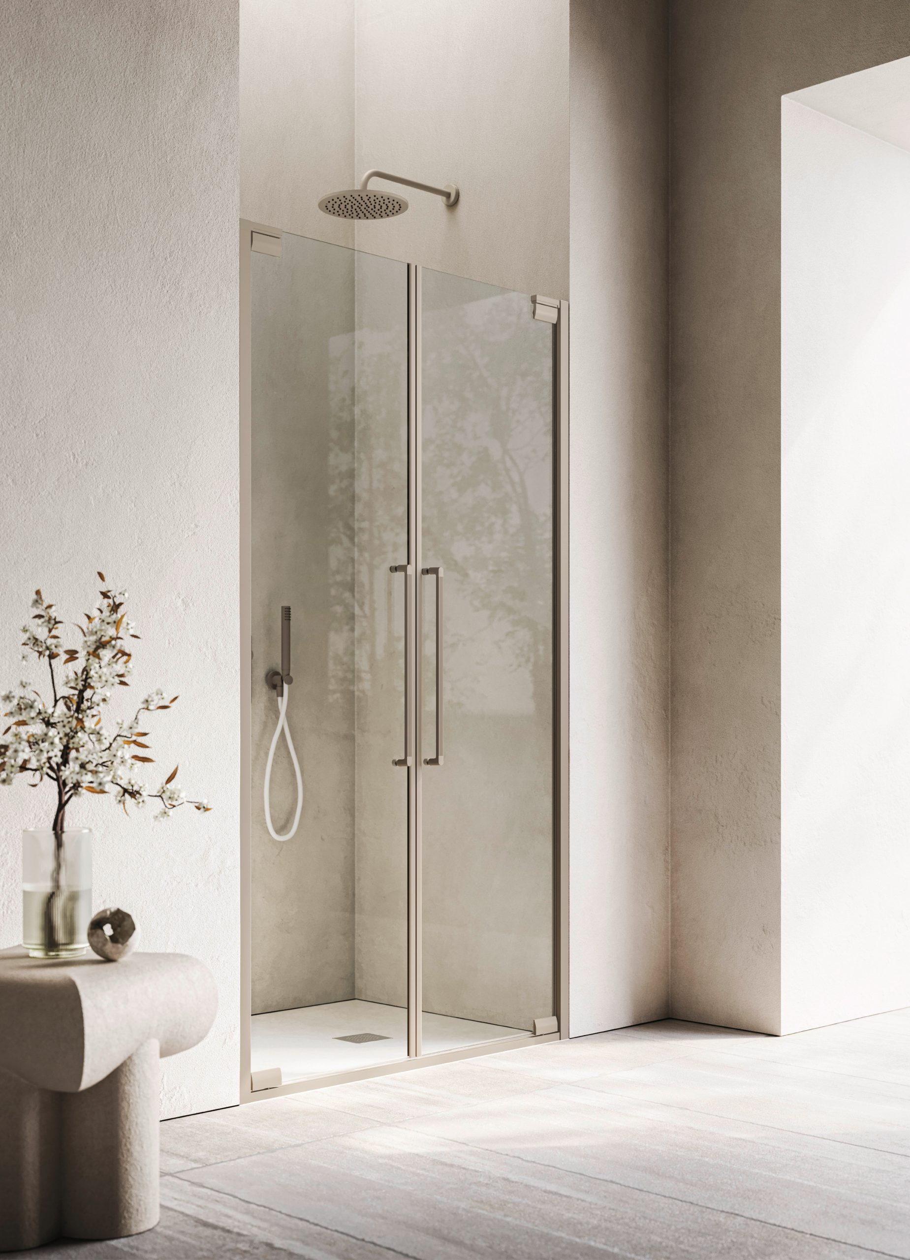 Angle porte pivotante + côté fixe latéral
