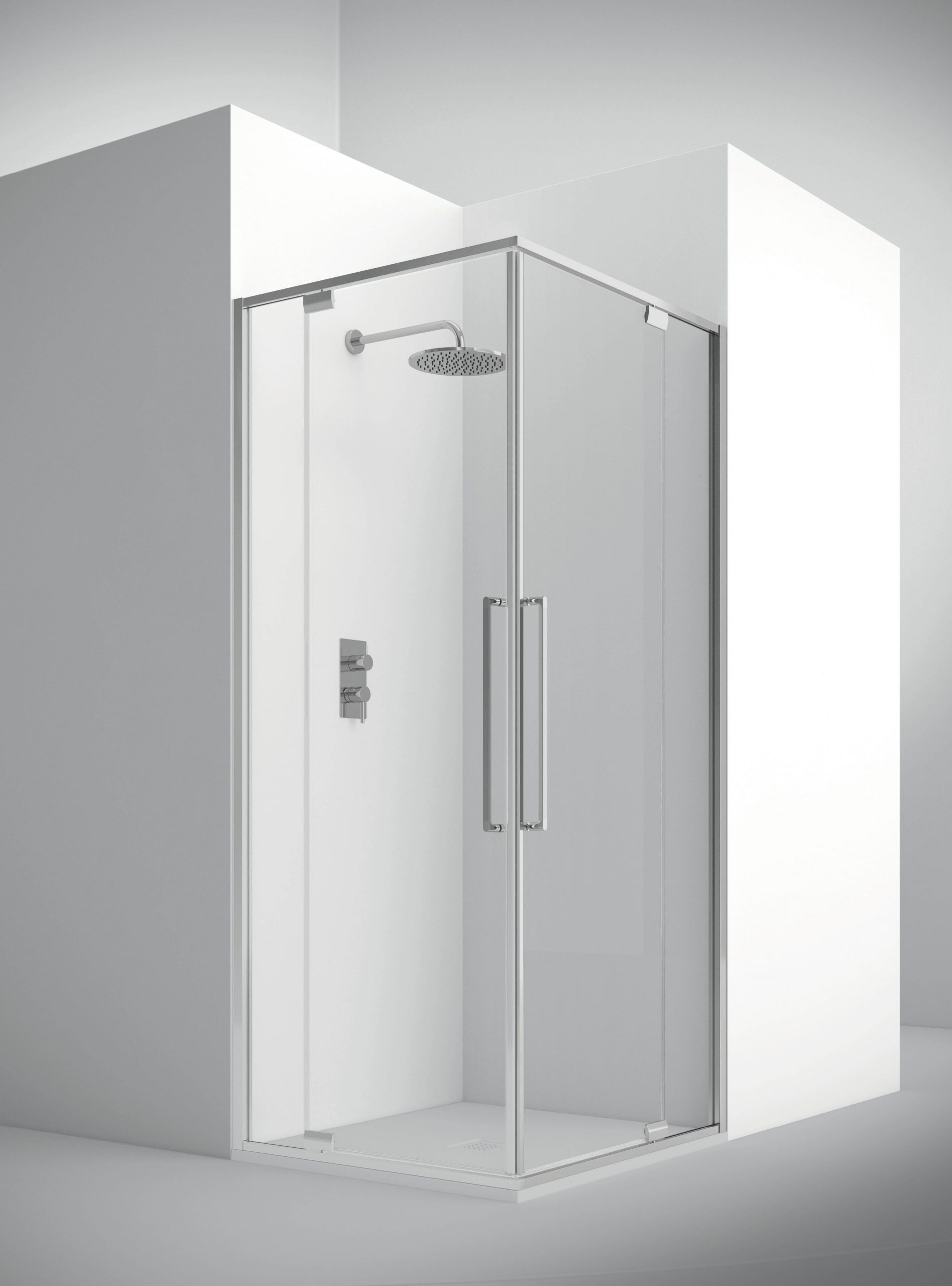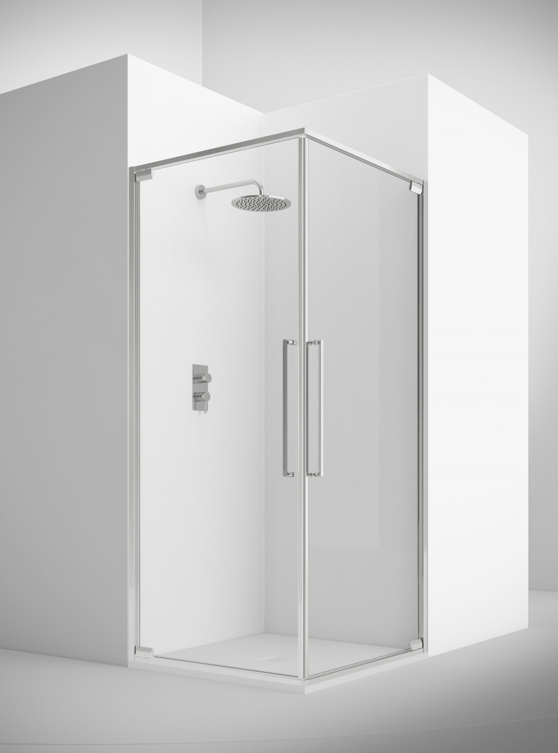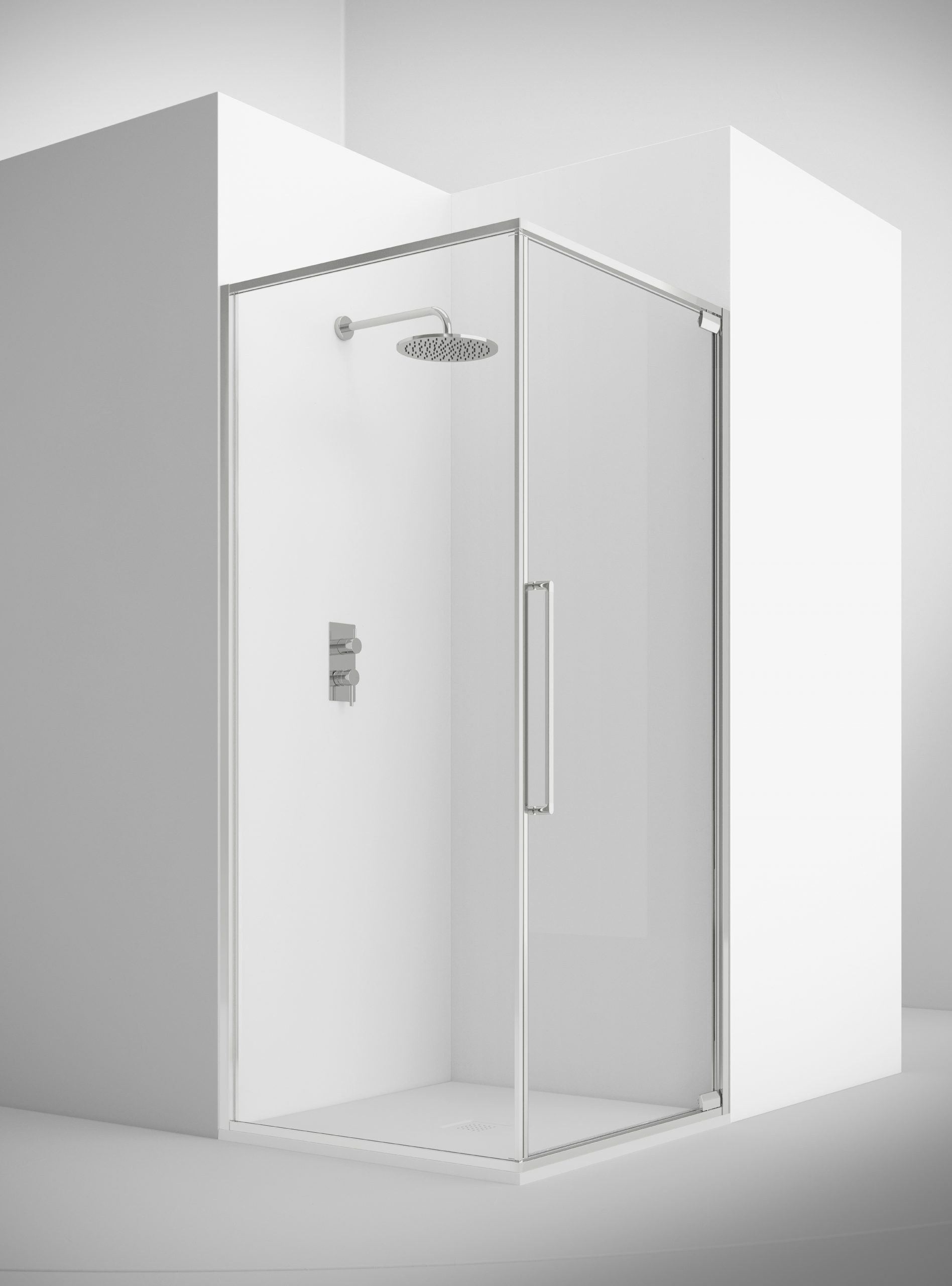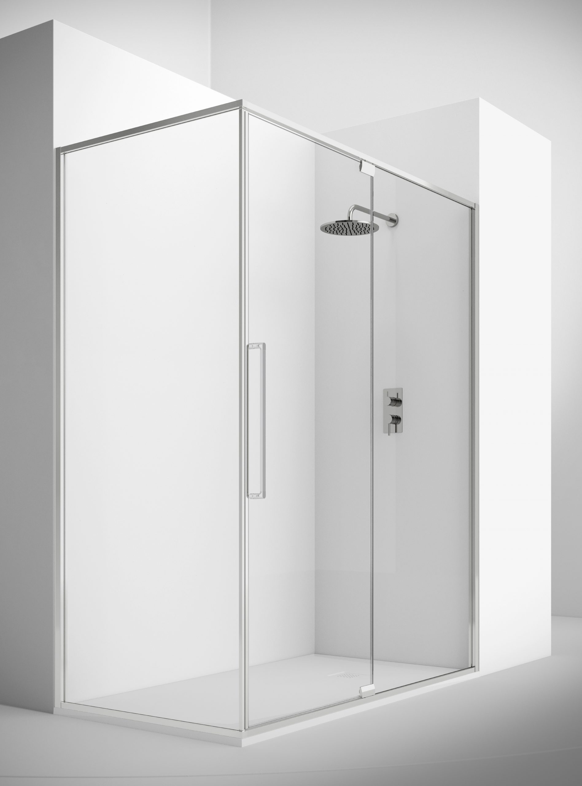 Angle porte pivotante en coin avec paroi fixe et côté fixe