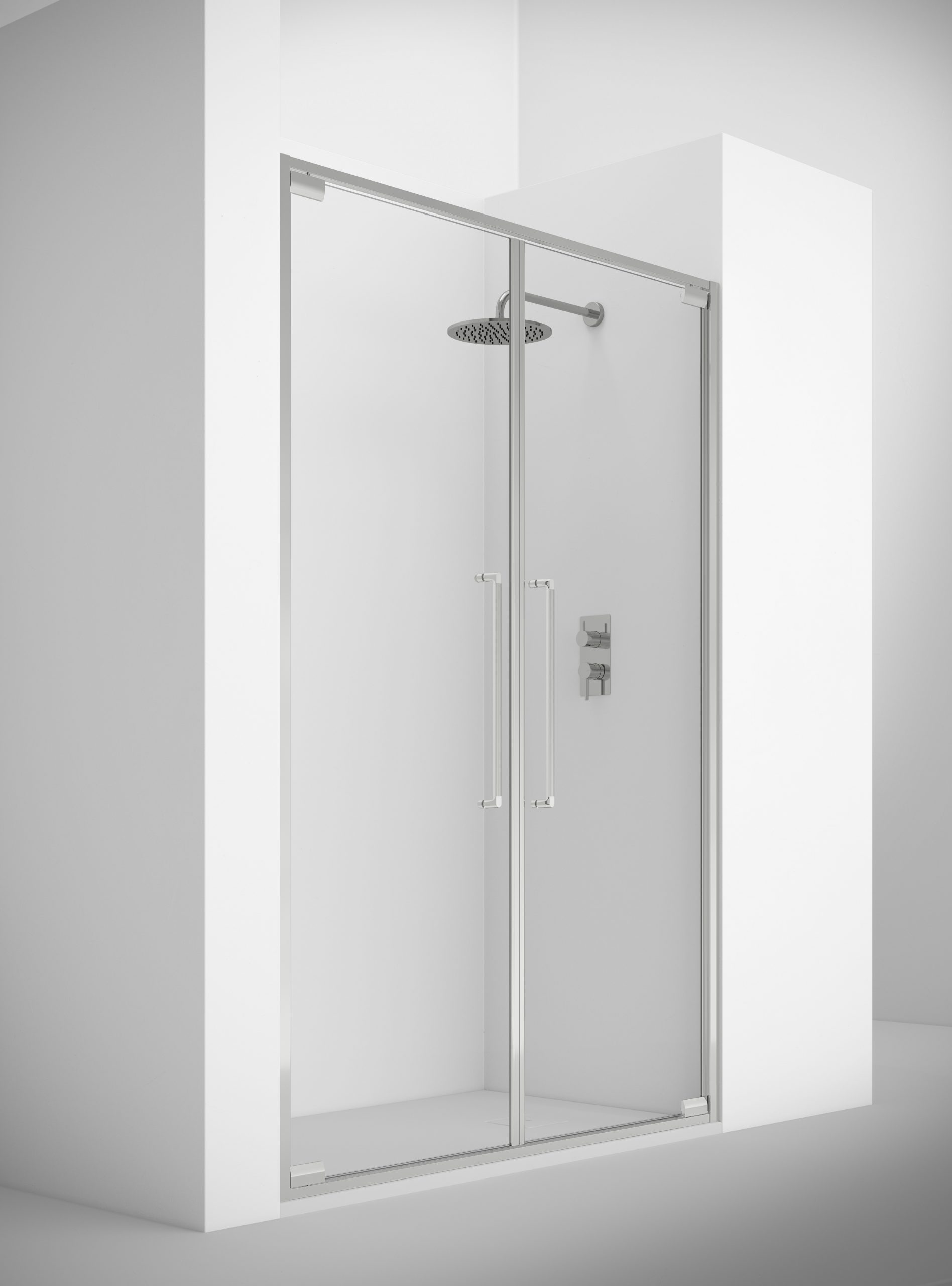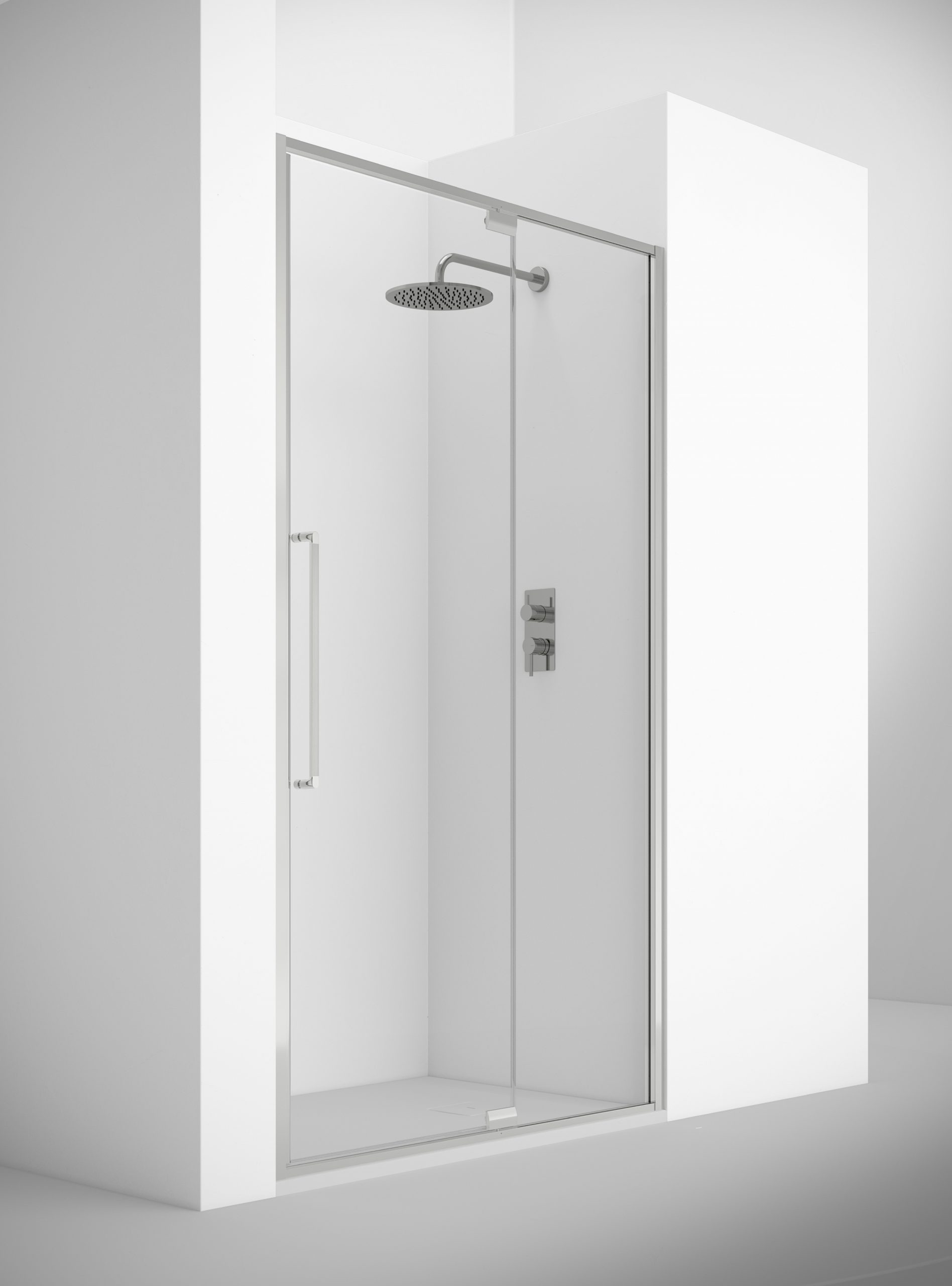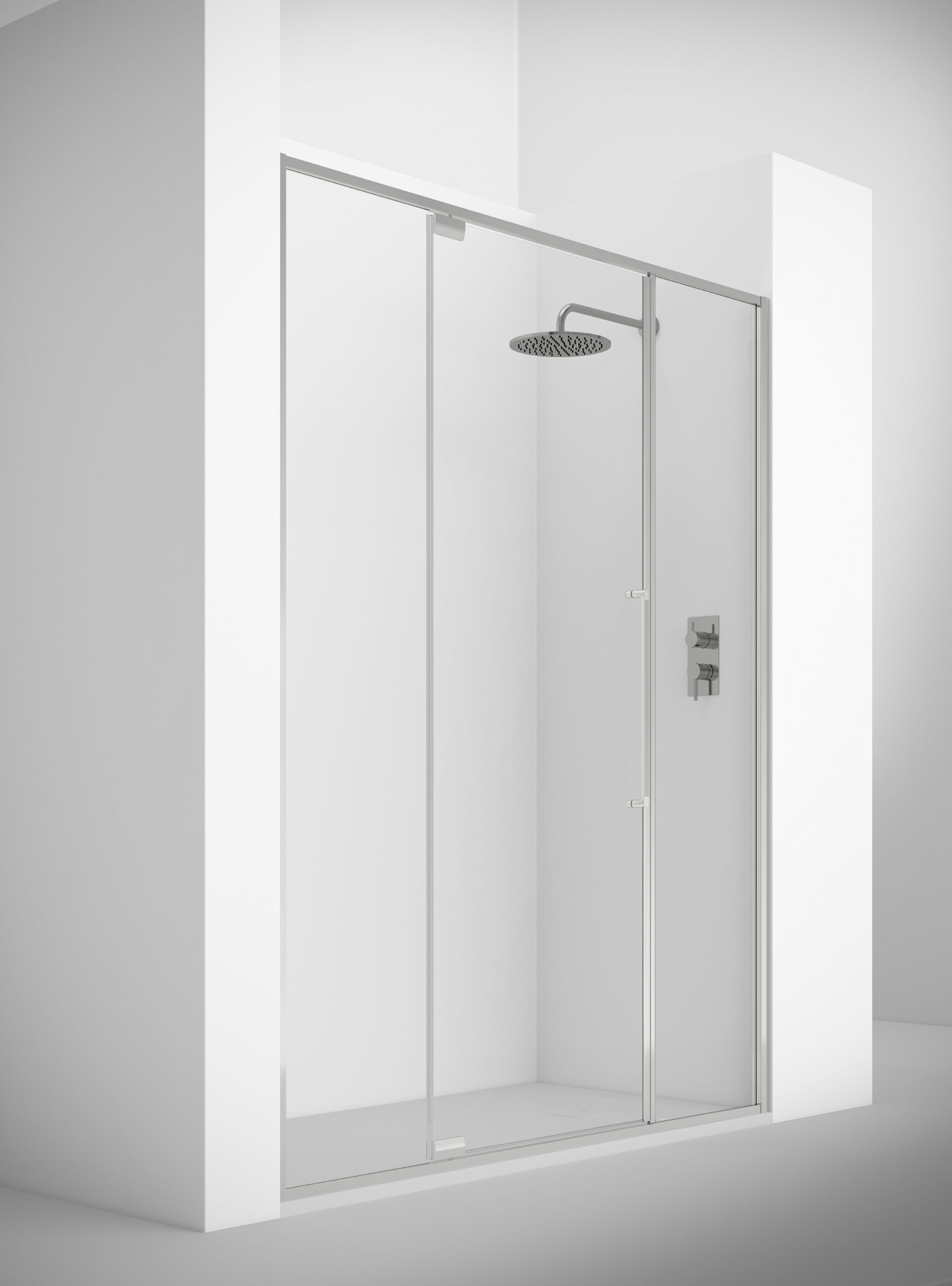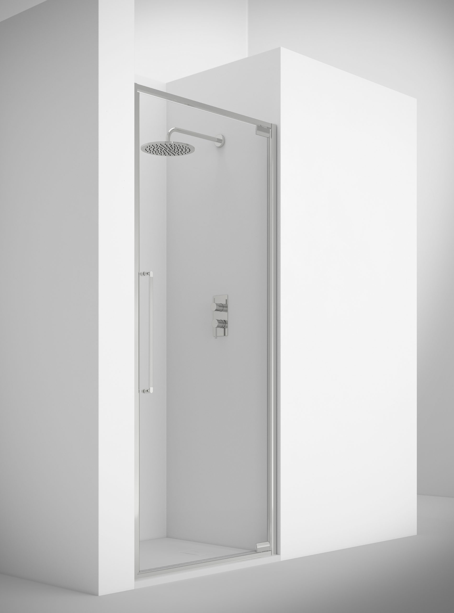 Angle porte pivotante en coin avec paroi fixe et côté fixe