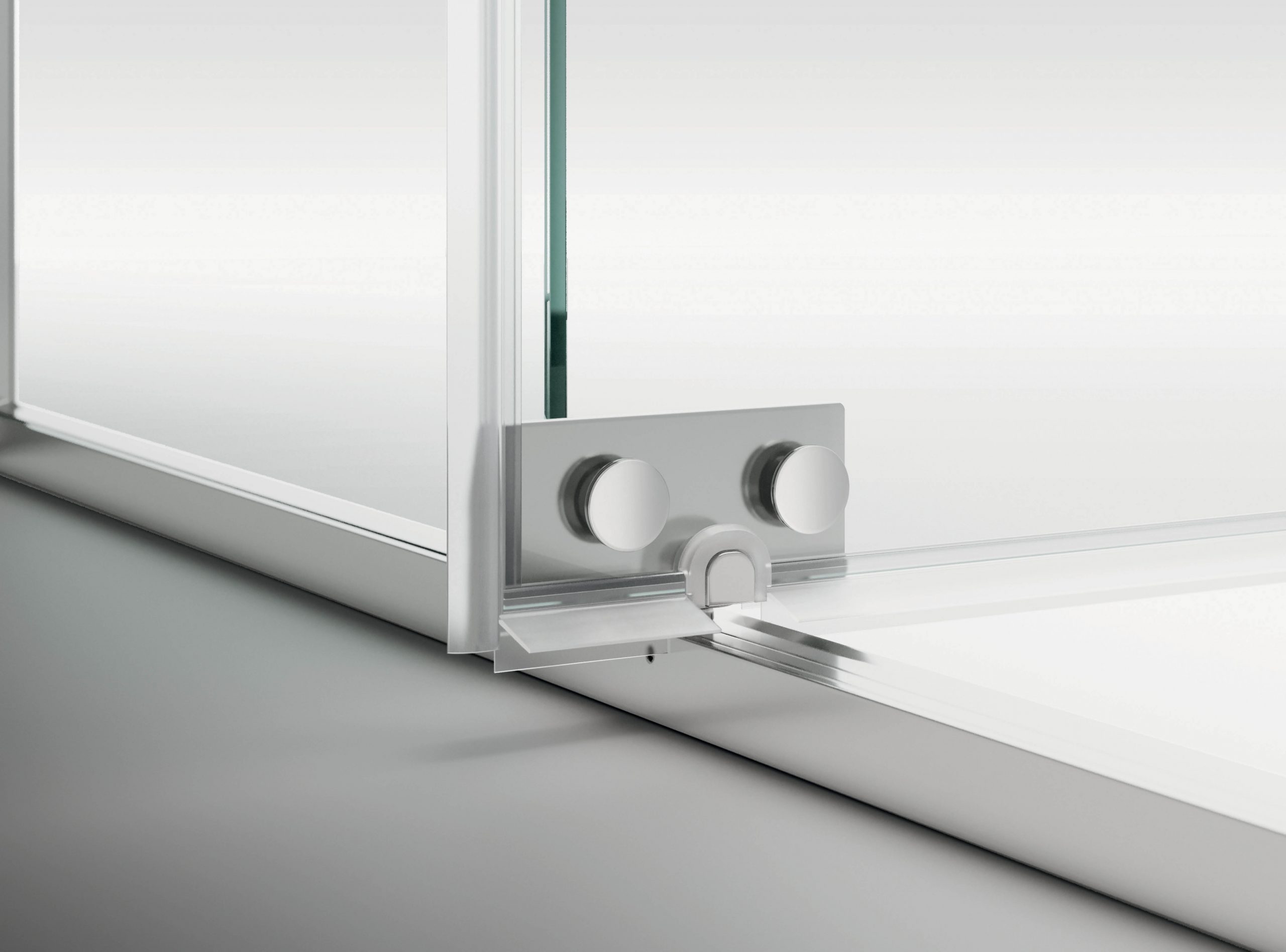 Le verre de la porte est fixé au moyen de joints excentriques qui permettent un réglage simple et complet.